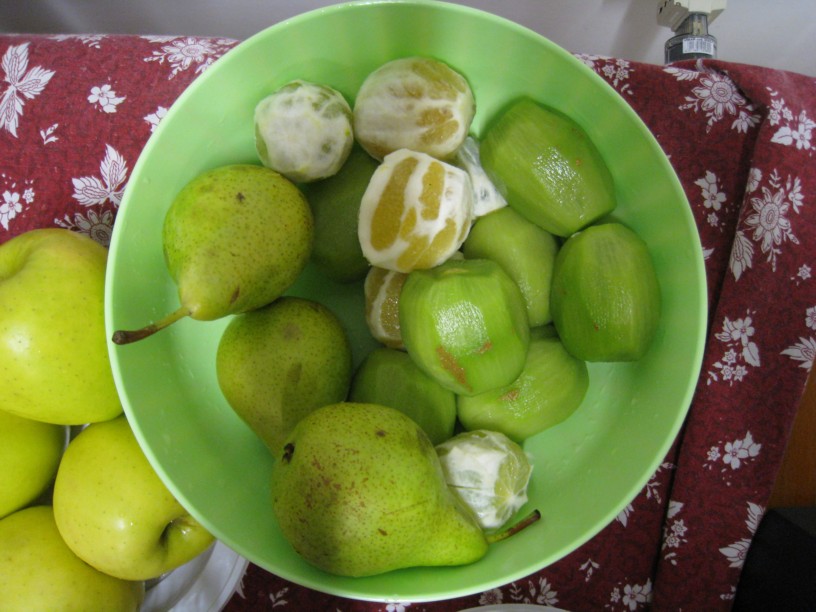 Chiara and Elisa still trying to peel whatever fruit came across. |