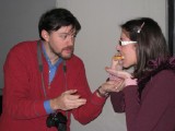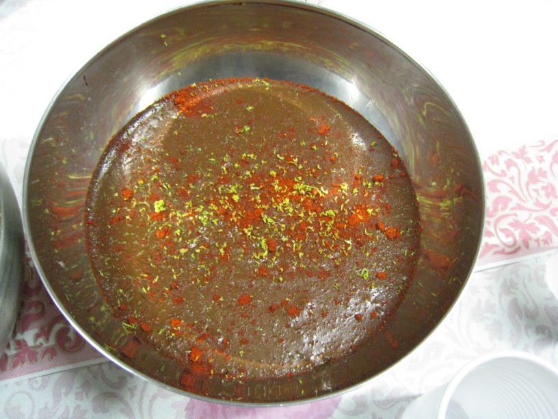 Franz and Eli eating Mirko's BOMB, a very spicy sauce made of chili peppers. |