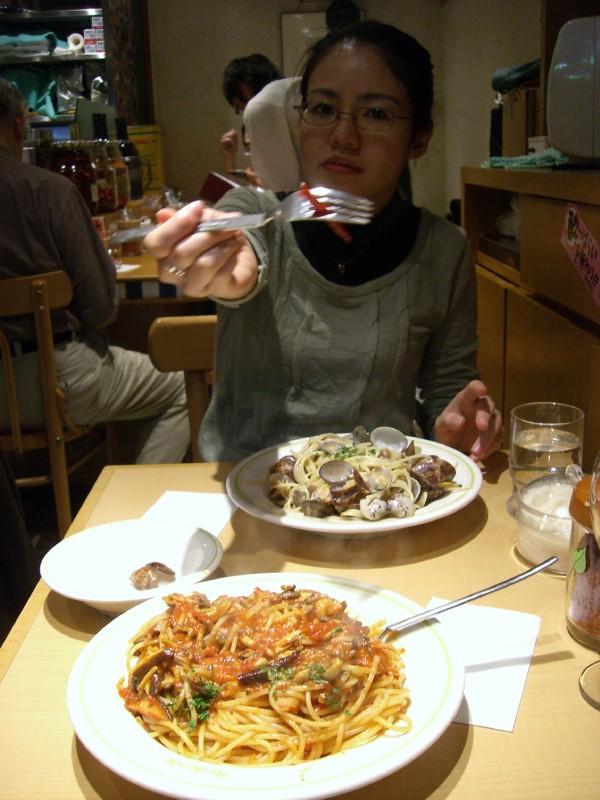 Oh and in a rare fit of fusion cookery, I even added in some shiitake. I wanted to have a spaghetti dish something like the one I used to have at Al Dente - Lorenzo's favourite (read "only acceptable") pasta place in Shinjuku. Shiitake works surprisingly well in tomatoey pasta sauces, although I think the one they do in Al Dente is mostly made with other Japanese mushrooms - possibly shimeji.