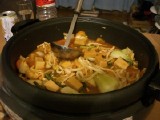 I made kimchi nabe for dinner, which came out rather well (with the usual "although I say so myself" caveat, of course). Although I did the initial cooking on the hob as usual, I finished it off with the hot plate thing which we put in the dining table - it really helps the overall effect of this dish being able to eat it like this.