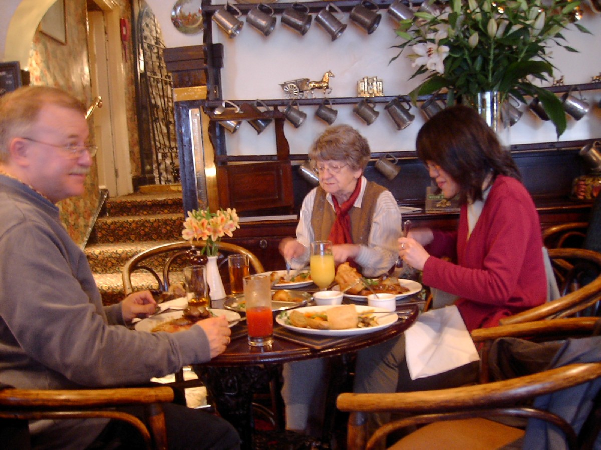 12:09:49 Me, Vera and Robin inside the Goose and Cuckoo. | 12:10:40 Chie instead of me. Vera looking rather dandy here! | 13:03:42 En route to The Bear in Crickhowell. | 13:23:11 Robin, Vera and Chie in the Bear at Crickhowell. |