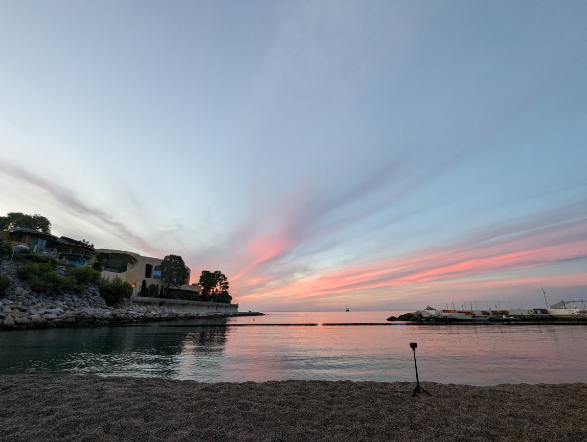 06:39:35 I awoke before sunrise and decided to go down to the hotel beach to see what there was to see. | 06:40:13 The actual point where the sun would have been popping over the horizon wasn’t quite visible from the beach, but the sky was very pretty. | 06:40:34 | 06:42:44 |