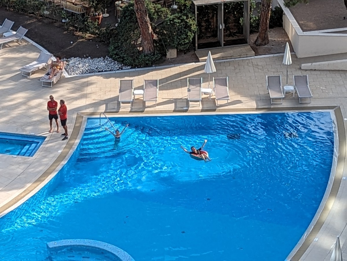 17:22:38 After another swim in the sea / pool I popped back to the room first to see if I could see the girls from the balcony. | 17:22:46 There they are! | 17:23:02 | 17:23:05 |