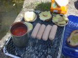 14:18:09 A close-up view of the barbeque. The beans cooked in their own can went down particularly well, although we were later told this isn't very safe. Apparently there are some toxins in the metal or something... ho, hum. |