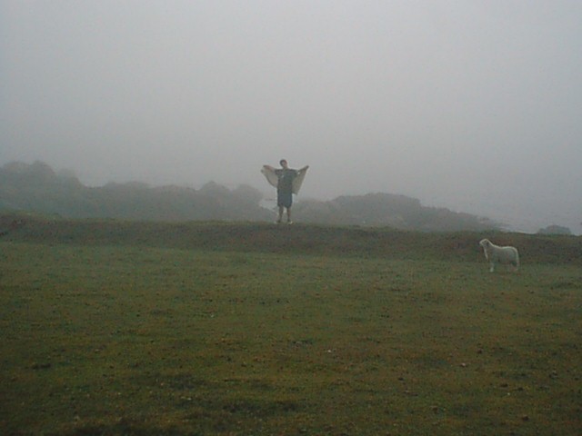 Luke in the distance, looking in the rockpools. | 16:19:14 Only in Britain can you set out to get a suntan, and