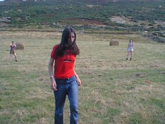 assume she woke her up every morning like this. | 13:06:23 More frisbying in the field. | 13:08:38 Lucy looking very indie-ish. | 14:26:31 I think Becca had just broken this drainpipe,