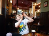 | 17:22:49 Gav taking a picture of me throwing away my old shoes. | 17:22:52 That's me coming back from the bin. | 18:27:09 In the Bath Arms now. Gav seems to have got stuck in a similar pose from the previous picture he appeared in. |