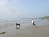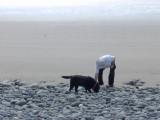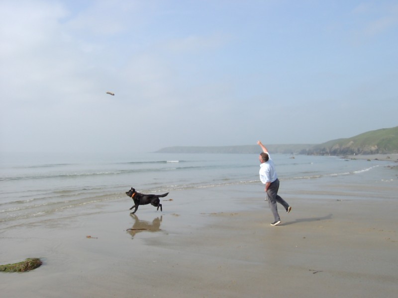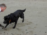 On the beach near Dad's house - Dad and Yates playing fetch.