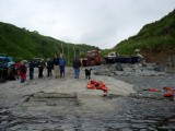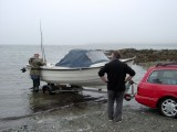 Here's the two Nicks putting the boat into the sea. I'm sure there's a more correct nautical term for this, but somehow launching doesn't seem quite right when it is reversed in off a trailer!