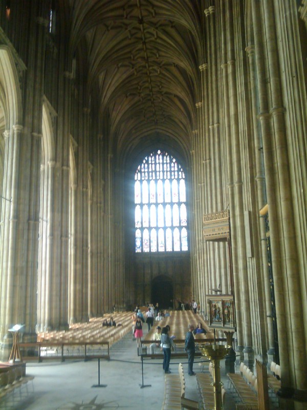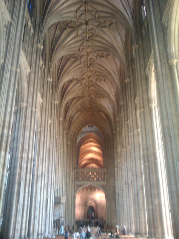 | 13:12:29 Rather liked this lamp hanging outside a pub. | 13:17:43 Chie in front of the cathedral. | 13:21:06 Inside the cathedral - mobile phone camera doesn't really do it justice! |