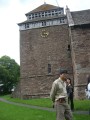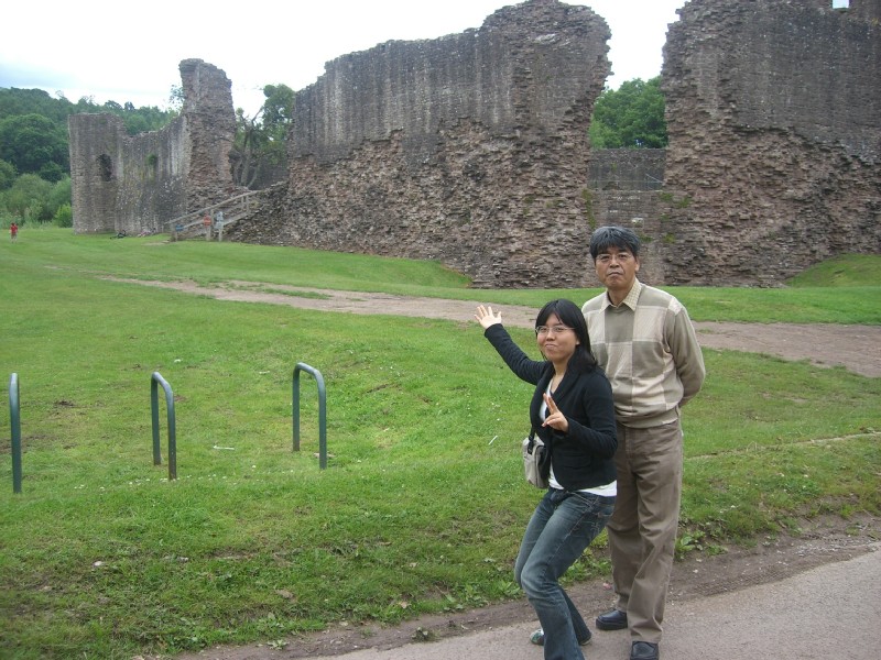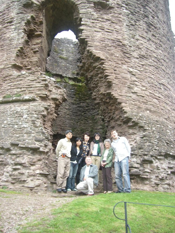 | 16:58:58 Back to Skenfrith castle (or the remains thereof) for yet more photo opportunities. A bit too far away methinks. | 17:00:31 Inside the main keep. | 17:02:48 Chie and Yuka simulating a battle. |