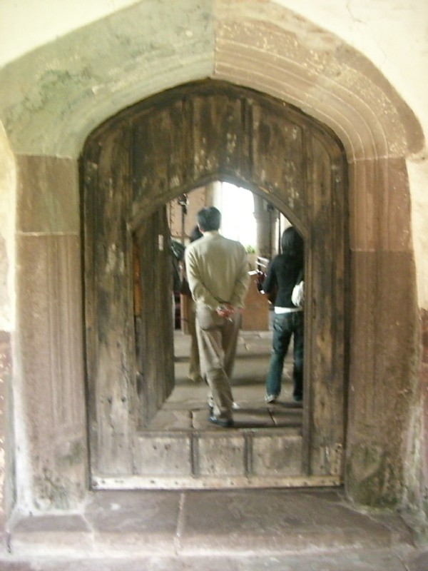 | 16:44:53 Chie and the family in front of Skenfrith church - what a lovely old building it is too. | 16:46:12 Looking through the door into the church... | 16:47:59 ...having a look round the inside. |