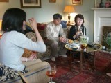 | 12:20:18 Chie and her parents relaxing in Vera and Robin's lounge. | 15:11:38 Vera and Mikiko-san on the back patio. | 15:12:39 ...bigger group picture... |