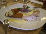 | 19:44:43 My main course, which I actually wasn't that keen on. Everyone else seemed to enjoy theres though. | 19:44:52 Yuka's main course, involving chicken and asapargus. It had these herby potato croquettes with it, which I rather liked. | 20:59:31 Yuka's dessert - creme brulee. |