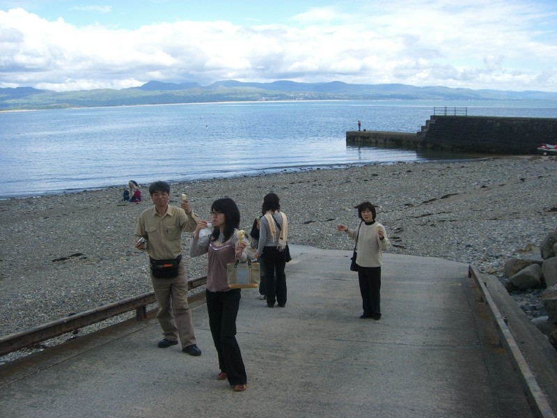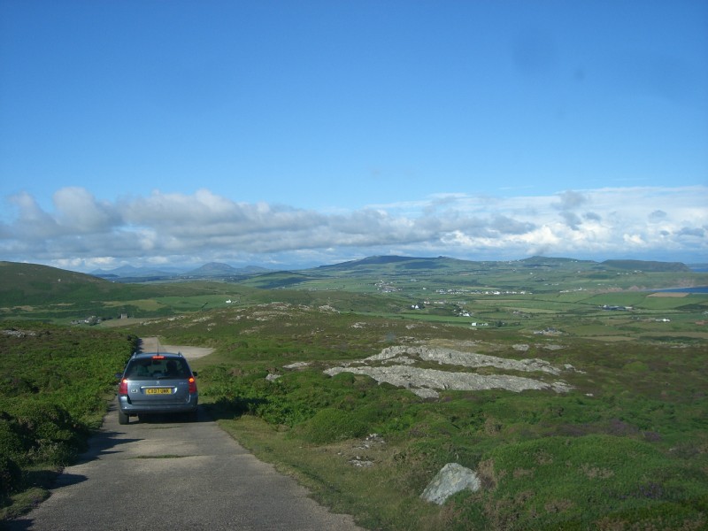 | 16:14:12 Bit of a view up to Criccieth castle. | 16:14:24 The family and their respective ice creams. | 18:32:43 After arriving, as the weather was so nice, Dad decided we should head straight out for a drive to see some of the local sights - so here we are on the road that leads up to that excellent viewpoint near Aberdaron. |