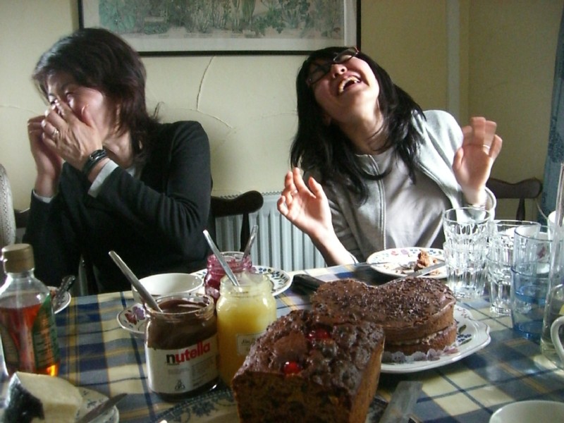 | 17:19:43 Walking along by the yachts in the harbour. | 18:25:31 Back at Dad's house now - and a random picture of our hire car. | 19:01:31 Chie and her Mum clearly enjoying themselves over a late tea! |