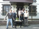 | 09:03:33 Yuka saying goodbye to Yates - he was a bit of a hit with our Japanese visitors. | 09:07:57 Nice group shot in front of Dad's house. | 09:08:03 I think I moved a bit too soon here... |