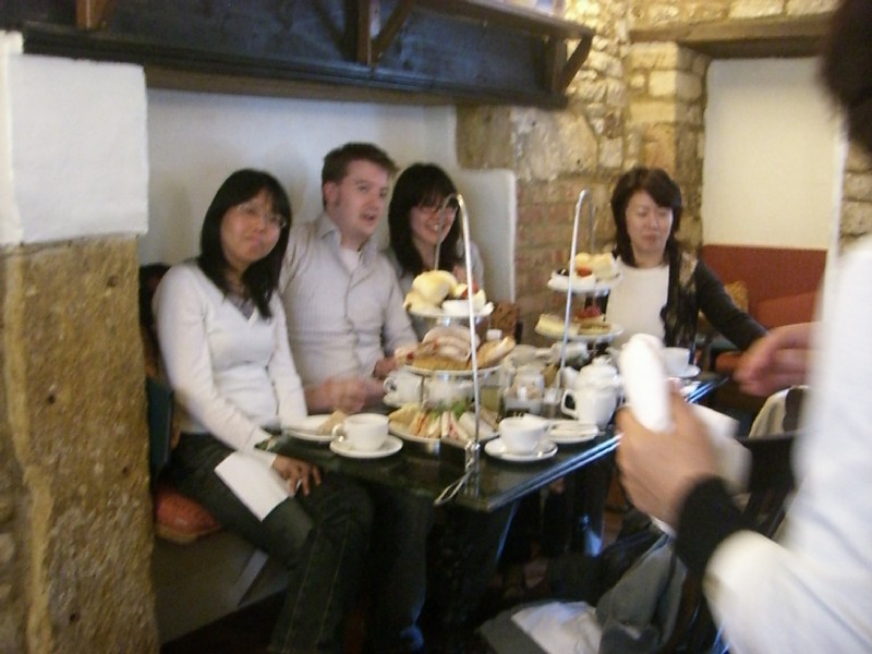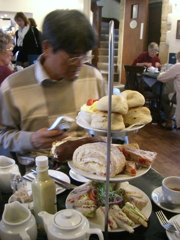 | 12:58:53 Yuka on a bridge. | 14:18:31 Our next stop was Burford - for Afternoon Tea at Huffkins - the place we always seem to end up at. | 14:18:37 We ordered the classic afternoon tea for four, and even though there were six of it, and we hadn't had anything since breakfast, we still couldn't manage it. |