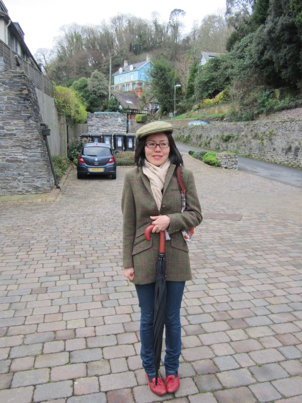 09:47:03 Chie looking very cahnty, as we were setting off for the day. | 10:49:36 At the Venue Cafe in Dartington - I had a craving for a greasy spoon style breakfast. Look at the size of the HP sauce. | 10:52:30 Chie and her breakfast. | 12:31:20 The only picture I took in Ashburton - I spooted this "Chaps club, est 1884" in a window above an antiques shop. |