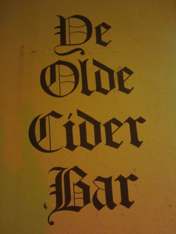16:56:13 In Ye Olde Cider Bar in Newton Aboot. | 16:57:57 Me with my pint of "suicider". | 17:18:16 The sign on the wall outside. |