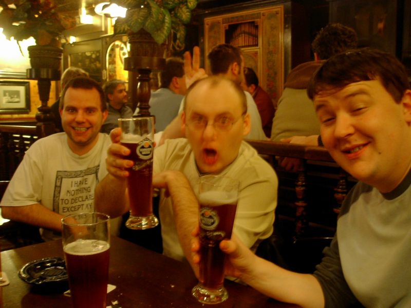 21:20:24 David "three beers" Symons. Having complained about the size of the beer glasses (which is of course the traditional way to server Kolsch to ensure it stays fresh) the waiter kindly served David three at a time.