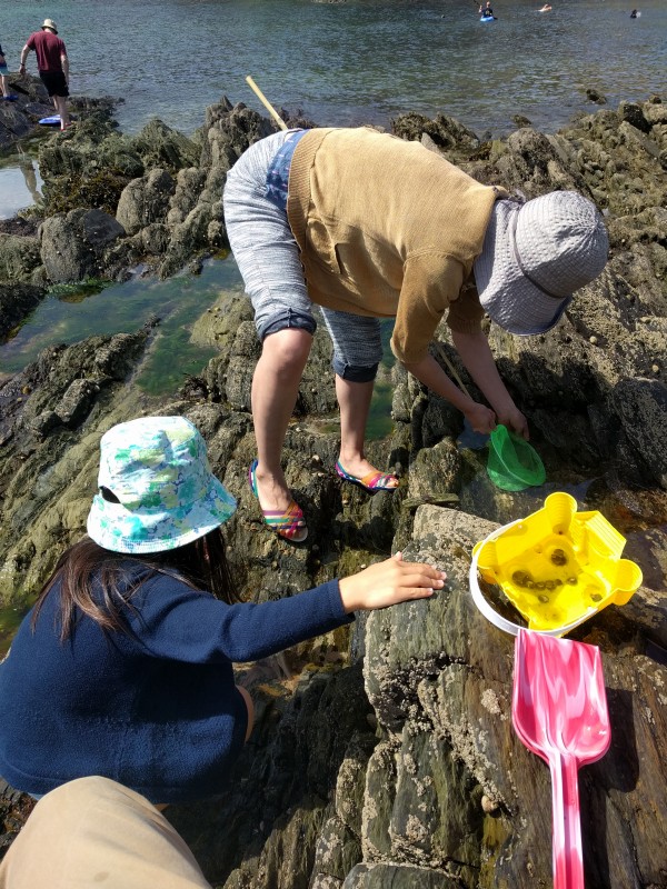 12:56:50 We also bought some beach equipment from the beach cafe / shop. | 13:15:41 Chie looking for sea creatures in the rock pools. | 13:17:41 | 13:18:34 |