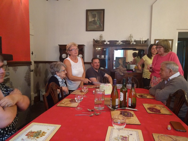 18:30:30 Our first meal with our full group of 22. A Sunday roast, of course. | 18:30:33 | 18:30:37 | 19:07:01 After dinner we had Vera's birthday cake, who had just turned 98. |