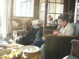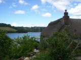 | 15:54:38 Well this shot was obviously doomed to failure. Anyway I was trying to illustrate how Tregothnan is just across the water from the Smuggler's Cottage, where fittingly Tregothnan tea is served. | 15:58:16 So here we have it - an exquisite cup of tea, a superb scone, and a lovely view. Bliss. | 16:00:38 A very brave bird that came and sat on our table. Unfortunately I couldn't quite focus on it. |