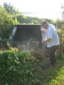 | 20:24:55 Yates finishing off the leftovers. | 20:32:34 Dad tending to a bonfire which the gardener had started earlier in the day, and had got a little out of control. | 20:54:14 Sunset over the bay. |