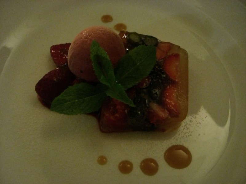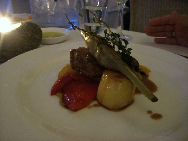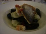 | 21:45:57 Chie's main course - sea bass with langoustine and mussels. | 21:46:14 Robin's main course - lamb. | 22:22:47 Chie's dessert. |