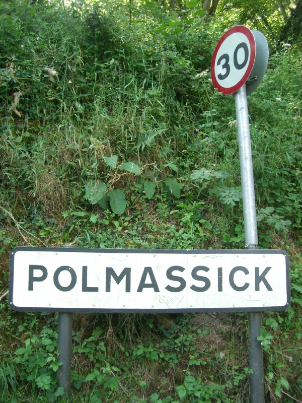 | 16:04:54 I spotted Polmassick on the map, and was determined to pass through - I had once put a finger on a map to find a name for a new Meaning of Liff term - see here. | 16:12:58 Erm, the sign at the other end of Polmassick (we stopped off inbetween to visit the vineyard and buy a bottle of wine). | 17:00:08 Back at the house, lovely sun glinting off the sea. |