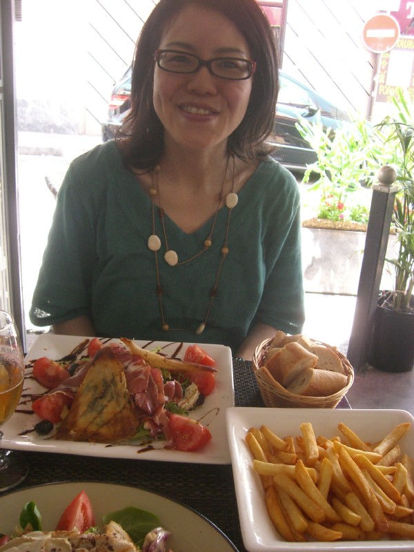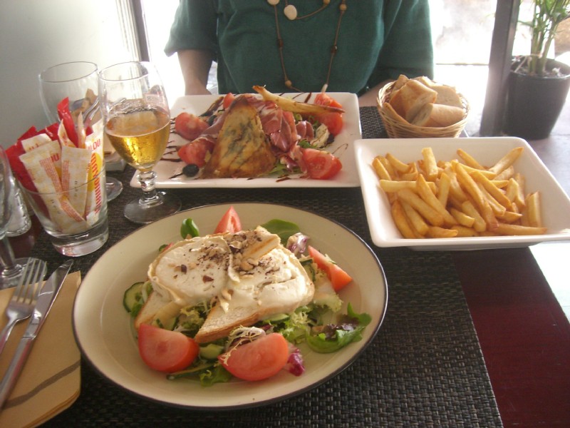 | 13:13:33 Lunch at a cafe in Cannes - we both fancied salads with chips. | 13:13:37 Our lunches - quite nicely presented here. | 14:00:32 The place where we had lunch - Le Crillon. |