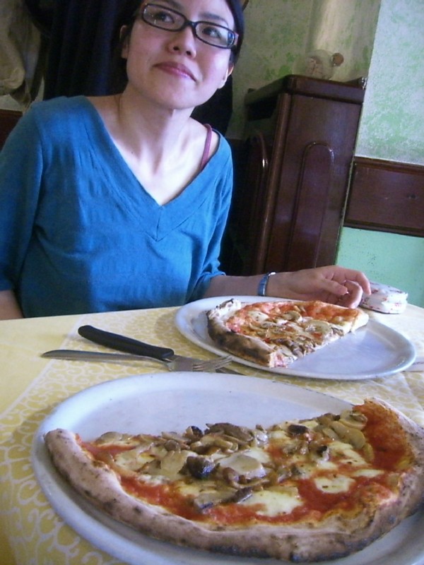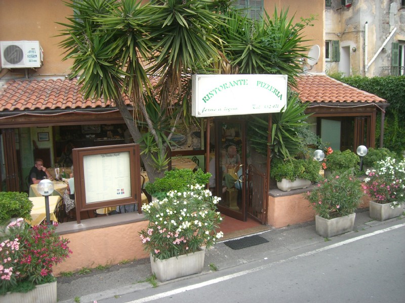 | 19:40:00 ....we then followed with half a pizza ai funghi each. There seemed to be loads of pizzerias in Nice, and we had tried a few of them, but every time it was a disappointment. By contrast the pizza at this place in Italy which we just walked into completely at random was very satisfying indeed, fantastic texture to the base, and real flavour in the tomatoes and mozzarella. | 20:03:46 The outside of the pizzeria in Ventimiglia, although I can't quite make out the name of it from the sign. | 20:46:50 On the train on the way back to Nice - I think I was trying to get a shot of Monaco here. |
