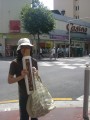 | 11:25:53 Chie outside a greengrocers with a rather impressive display of peaches. | 12:05:37 The Casino supermarket where we bought things to eat on the train. | 12:29:10 Last meal in France - lunch at a cafe in Nice. |