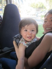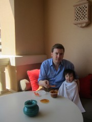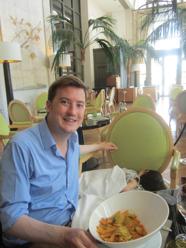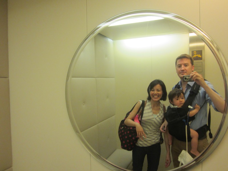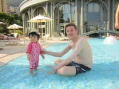 13:07:49 We went for a swim immediately on arrival as our room wasn't ready yet. This is us in the lift heading to our room afterwards. | 13:22:57 Chie in the restaurant downstairs in the hotel where we had lunch. | 13:34:57 Me, my lunch and Erika asleep on the chair next to me. | 14:20:11 Me and Erika in our room. |