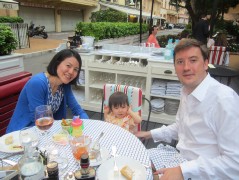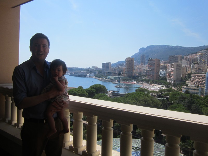 14:20:26 Me and Erika on the balcony of our room, with a view of Monaco and the sea. | 14:22:09 Feeding Erika a late lunch out on the balcony - she was asleep when we had ours. | 14:22:10 | 14:22:19 More view from the balcony. |