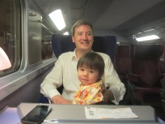 11:51:23 After changing carriages at Nice, I think this is somewhere around Cannes. | 14:04:37 Later on, lunch in the buffet car. | 19:45:35 The TGV to Paris was over an hour later, and we only just made our Eurostar from Paris with literally a minute to spare. | 20:06:56 Happy to have made the train, and a bit exhausted from the dashing about! |
