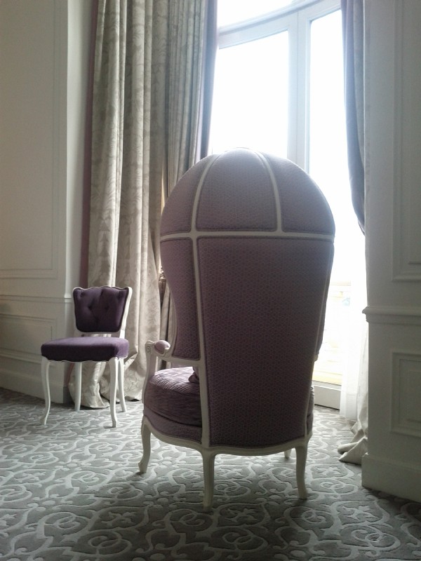13:54:51 The yellow submarine outside the oceanographic museum. | 14:01:48 The Chocolaterie de Monaco, where we bought some chocolates. | 14:40:44 Back in our hotel room. | 14:40:52 I rather liked the look of this chair, although it was a bit weird to actually sit in, as you ended up surrounded by an echo of your own voice. |