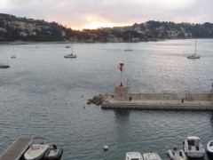 07:07:40 I woke up early in Villefranche, and caught a bit of the sunrise. | 07:07:56 Not sure this picture really does it justice. | 07:08:06 The wind was up as well, as is hopefully made evident by the flag on our balcony. | 07:08:20 I rather liked this effect of the sunrise through the flag. |