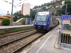10:10:52 Leaving the Welcome Hotel to head to the station. | 10:13:30 Winding our way through the passageways of Villefranche en route to the station. | 10:34:21 The train that would take us to Monaco. | 10:57:35 In Monaco now - here's a little church near the station. |
