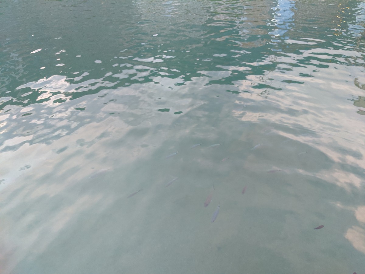 19:39:37 Erika having some ice cream after dinner. | 19:54:04 The beach which the restaurant is on. | 19:57:05 A pleasant after dinner stroll. | 19:58:26 Lots of fish visible in the water! |