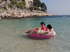 13:20:27 Port Hercule on the way back to the hotel. | 13:21:41 | 14:45:40 Back at the hotel now, Chie and Erika with this inflatable ring floating in the sea. | 14:46:05 |