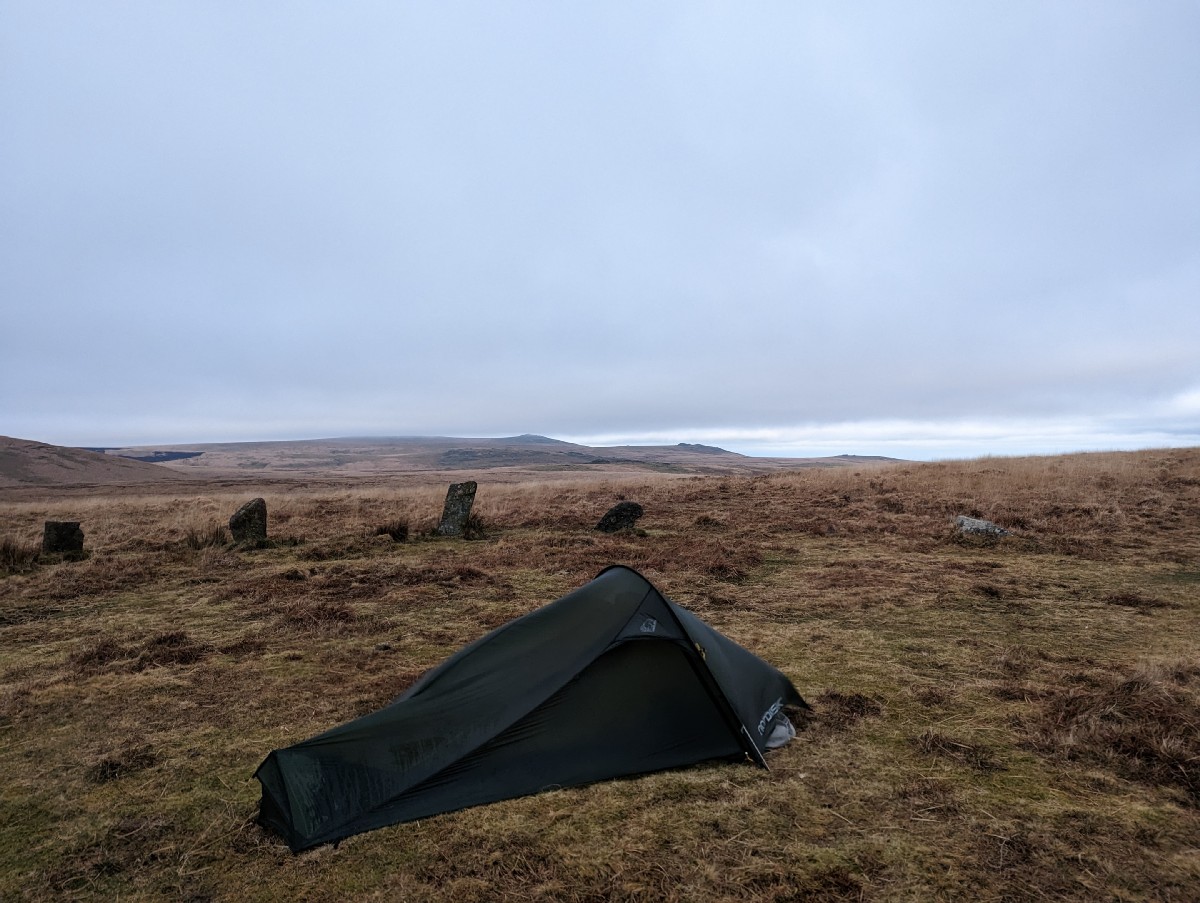 07:16:47 Alas a bit cloudy this morning so not much of a sunrise, but it was still great to wake up on the moor. | 07:16:57 | 07:17:03 In my silly hat to keep warm, it was a bit chilly this morning. | 08:38:29 Headed up nearby Cosdon Hill after packing up camp. |