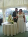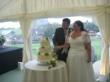 | 16:13:20 The wedding party. | 16:45:19 Lovely views all the way out to sea from here. | 17:46:38 David and Lucy cutting the cake. |