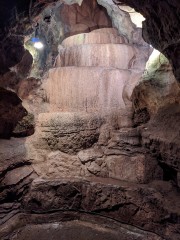 12:04:35 On arrival in Cheddar we went to the "Dreamhunters" exhibit in Cox's Cave. It was a bit naff to be honest. | 12:07:48 Challenging lighting to take photos in. | 12:12:58 | 12:13:46 Would probably have been nicer without the projections and with better lighting! |