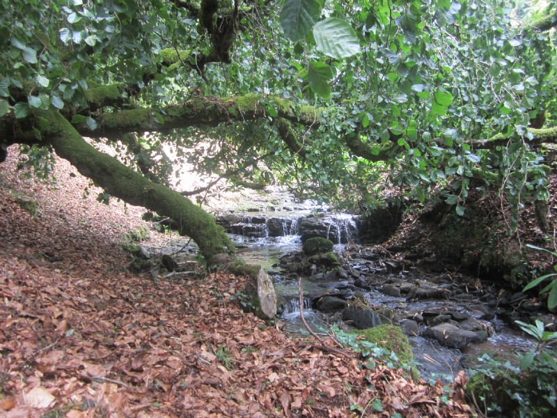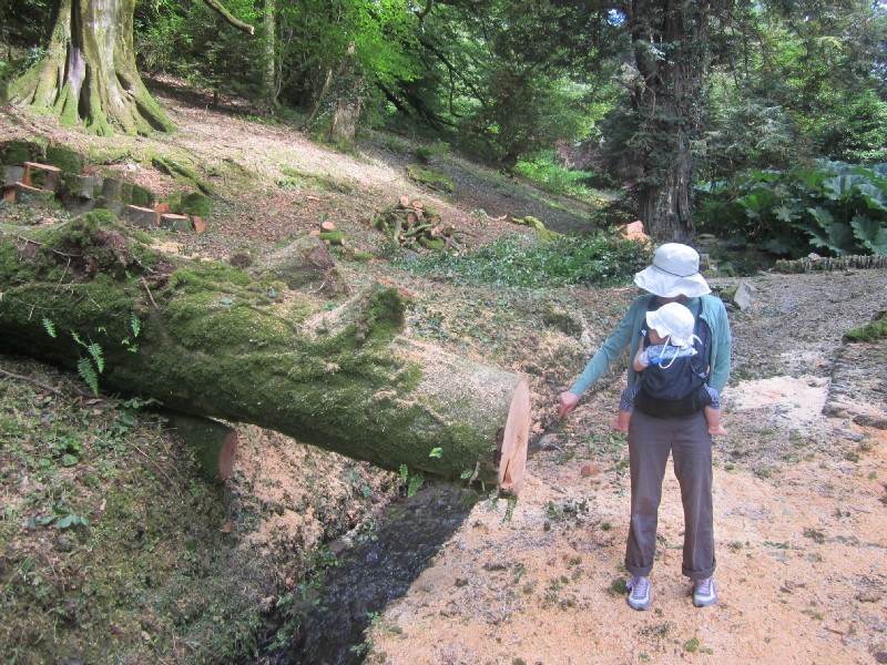 10:40:08 | 10:41:19 This tree had recently fallen down, damaging tbe bridge in the previous shot. | 10:47:50 There was a little offshoot of the stream which we dropped a leaf in and followed downstream. | 10:47:57 ...with the occasional prod. |