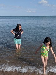 16:04:34 | 16:05:13 Everybody in hats! | 16:46:03 Erika on the beach. | 17:05:05 Chie and Erika having a paddle in the sea. |