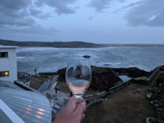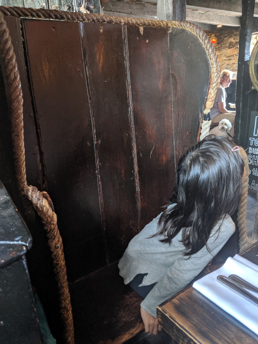 12:06:20 | 12:06:22 | 12:06:25 It was a bit windy! | 12:24:55 In the Pilchard Inn now for lunch. Erika had this rather impressive chair and I tried to get a picture of her in it but she didn't want to be photographed. |
