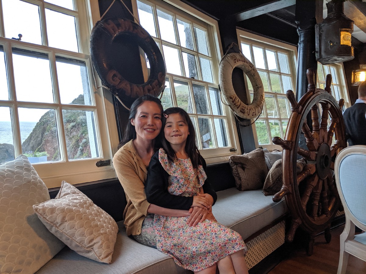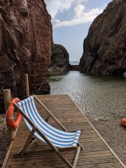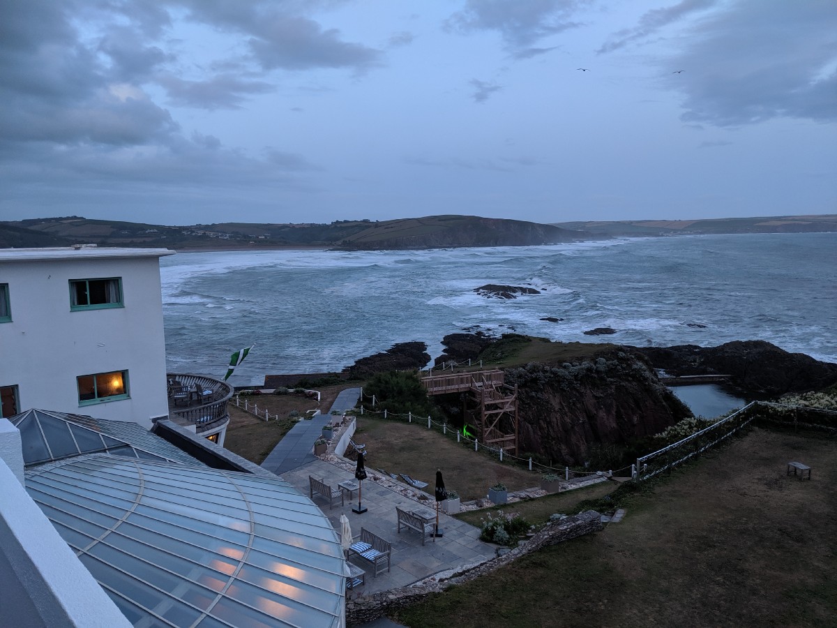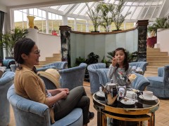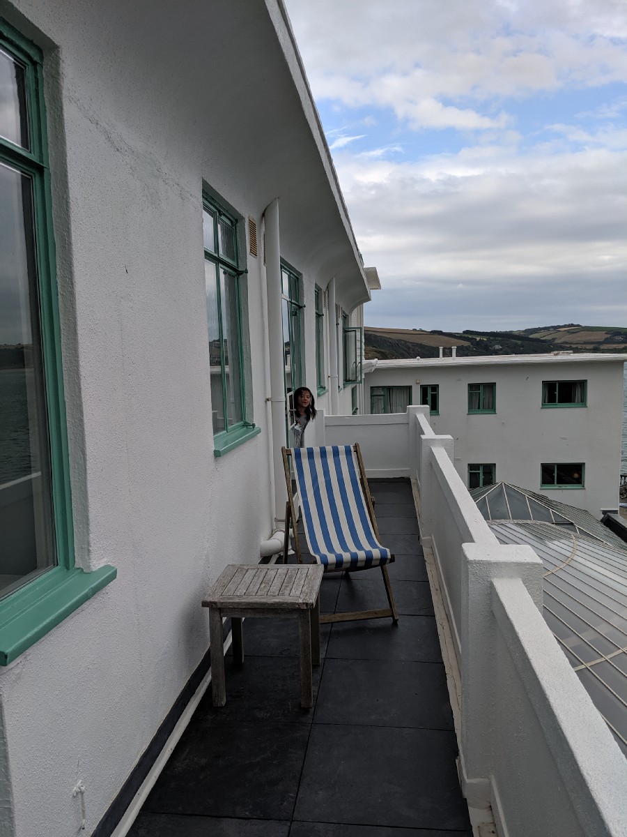 13:53:54 ...and now Burgh Island was a proper island once again. | 13:54:29 Zoomed in on the sea tractor the other side. | 14:01:44 As it had started to rain outside, we decided to have a spot of afternoon tea while we were waiting for our room to be ready. Erika's interpretation of afternoon tea was ice cream! | 14:01:48 |