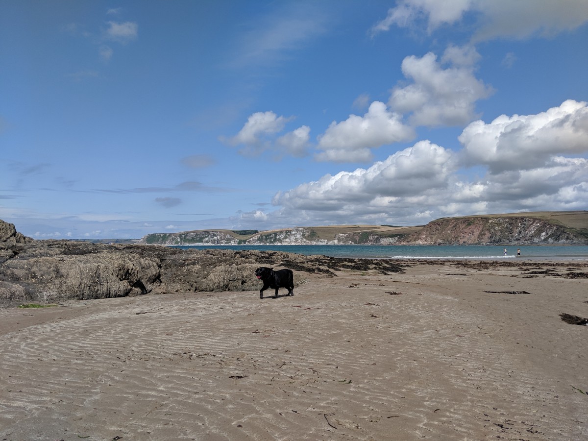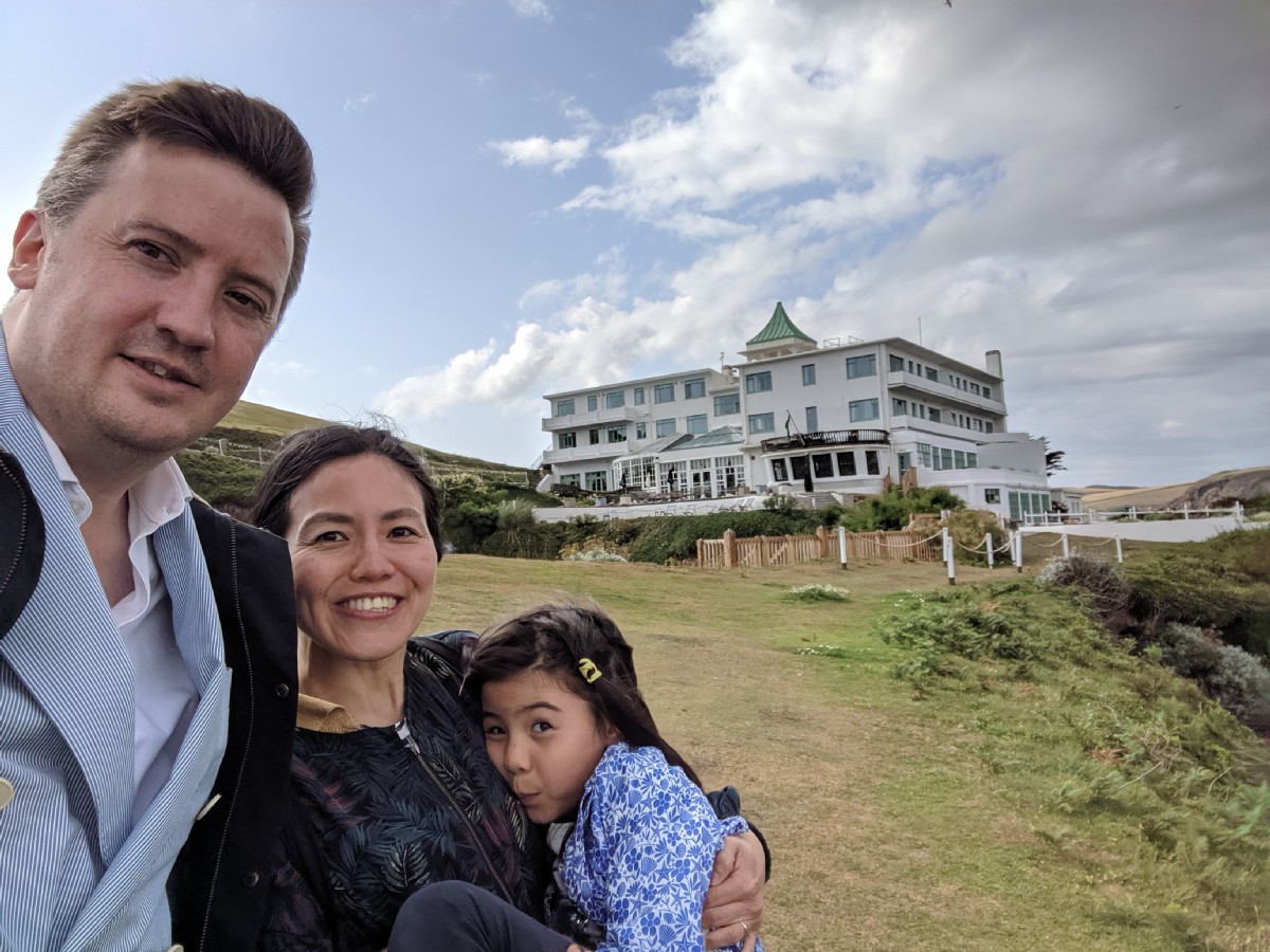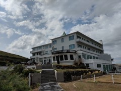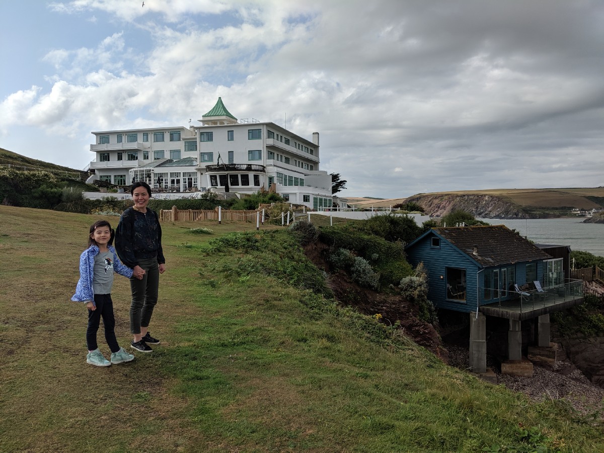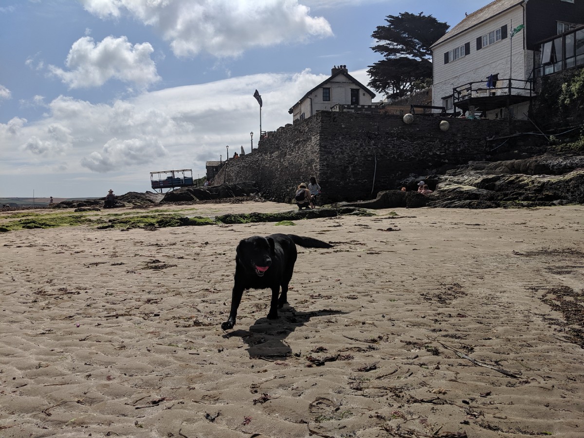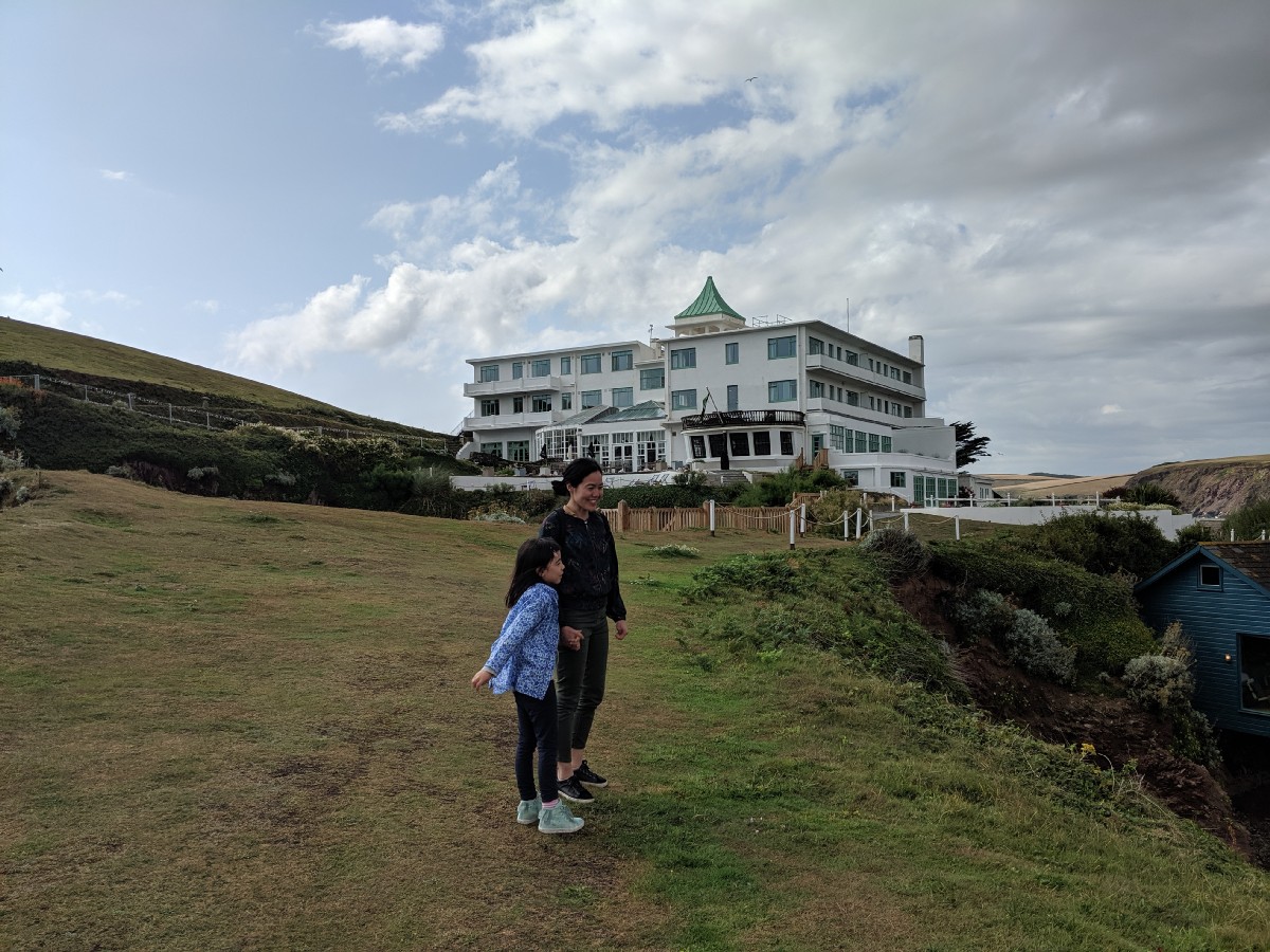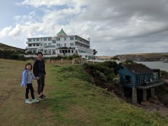 11:41:19 Me outside the hotel. | 11:41:26 | 11:49:44 The hotel and the Pilchard Inn seen from where Erika was playing on the beach. | 11:54:31 Jess having an explore. |